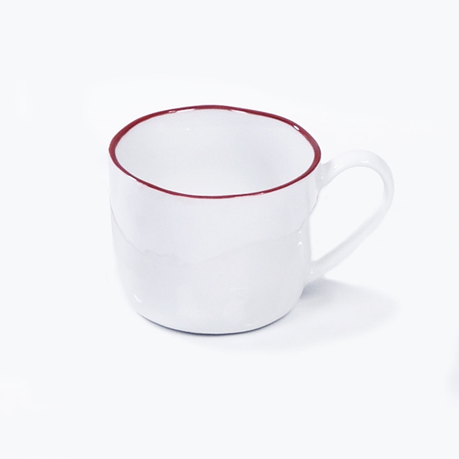 Das Porzellanservice Piana bietet Ihnen vielfältige Kombinationsmöglichkeiten und ermöglicht somit ein täglich neues Arrangement auf dem gedeckten Tisch. Als modernes Mix und Match Service überzeugt es durch sein fein ausgelotetes Formenspiel von rund und eckig, das so alle Artikel individuell miteinander kombinierbar macht. Die ungewöhnliche Textur von Piana bietet ein außergewöhnliches und dabei zeitloses Dekor. Grundsätzlich ist das Geschirr spülmaschinengeeignet.Maße: Espressotasse ø 6,5 cm, H 5 cm Material: Porzellan, Dekor Rand Farbe: weiß/rot -
