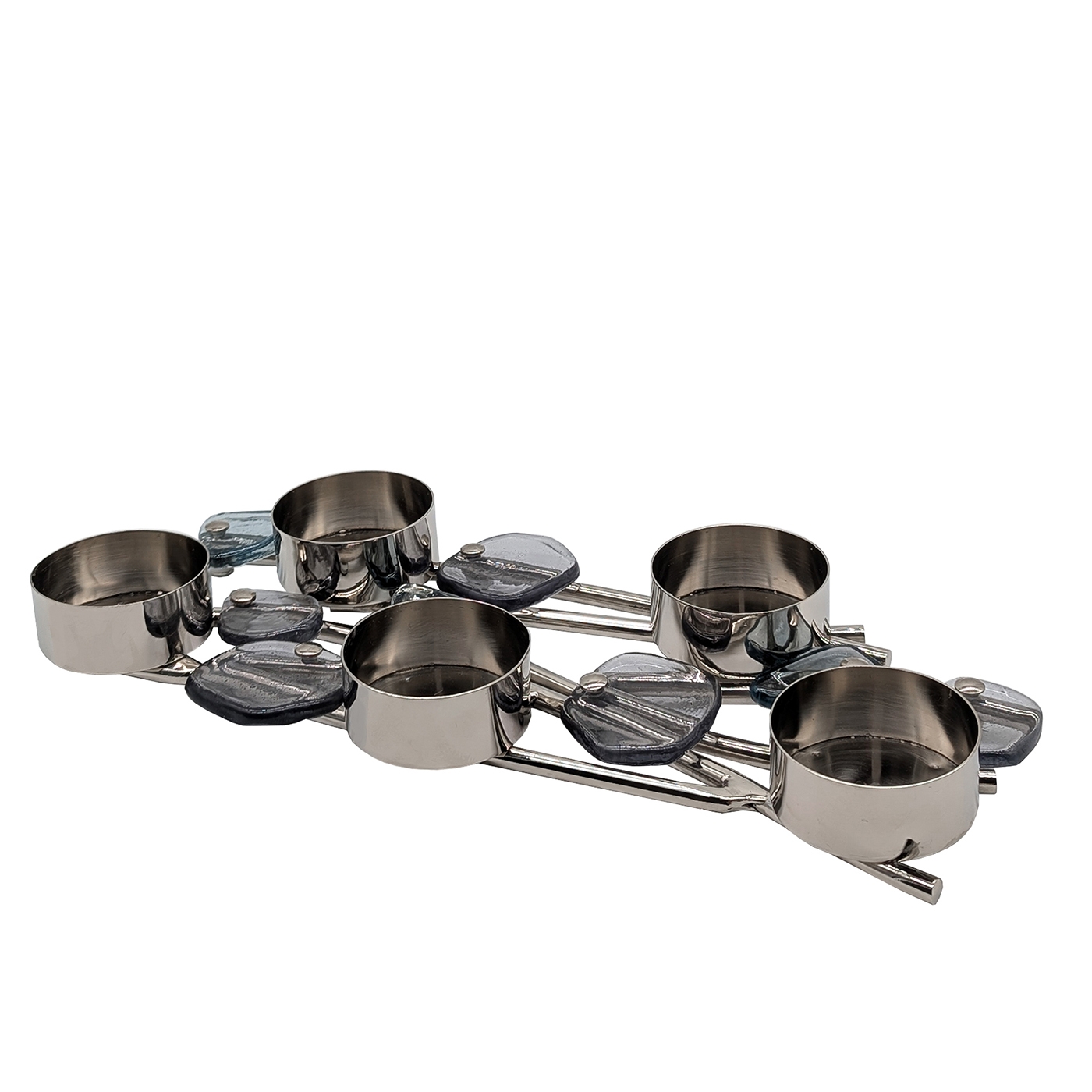 Maße: 34,5 x 13 cm Material: Edelstahl und Glas Farbe: Edelstahl und rauchblau -