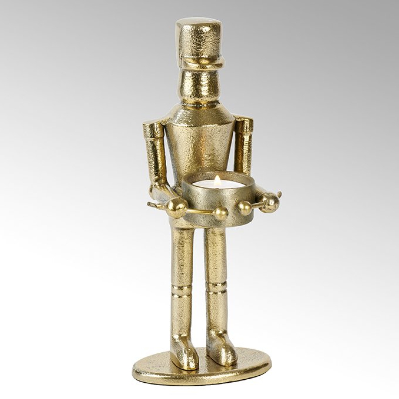 Dieser kleine Trommler bietet eine moderne Form zu den klassischen Nussknackern und bringt auf eine sympathische Weise weihnachtliche Stimmung mit sich. Ob einzeln oder auch als Gruppe ist er definitiv ein besonderes Dekoelement. Wachsreste dürfen nicht mit scharfen Gegenständen entfernt werden, sie zerkratzen die sensible Oberfläche. Es empfiehlt sich, warmes Wasser, etwas Spülmittel und einen weichen Lappen hierfür zu nutzen.