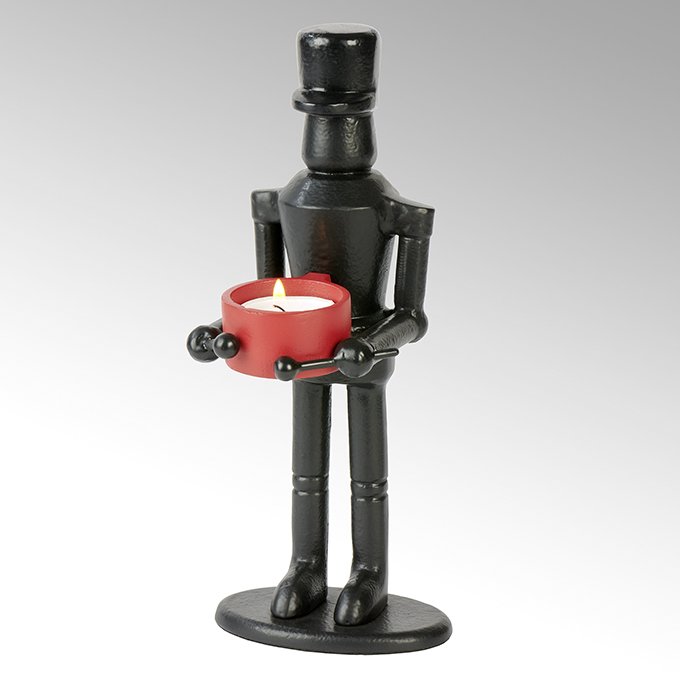 Dieser kleine Trommler bietet eine moderne Form zu den klassischen Nussknackern und bringt auf eine sympathische Weise weihnachtliche Stimmung mit sich. Ob einzeln oder auch als Gruppe ist er definitiv ein besonderes Dekoelement. Wachsreste dürfen nicht mit scharfen Gegenständen entfernt werden, sie zerkratzen die sensible Oberfläche. Es empfiehlt sich, warmes Wasser, etwas Spülmittel und einen weichen Lappen hierfür zu nutzen.