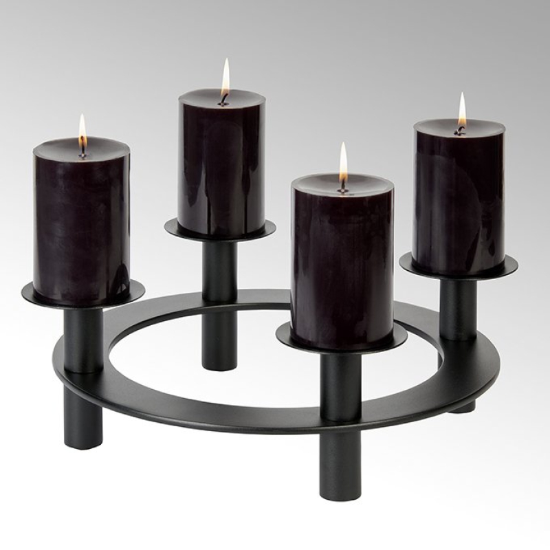 Der moderne, klare Kranz mit seinen großzügigen Proportionen ist nicht nur zur Adventszeit ein besonderer Schmuck für die Tafel. Auch zu anderen Gelegenheiten mit ein paar frischen Efeublättern oder mit Blüten umwickelt, setzt er den Festtisch ins richtige Licht. Uranus wird aus pulverbeschichtetem Aluminium gefertigt und besticht durch seine schwarze Patina. Heißes Kerzenwachs kann vorsichtig mit warmem Wasser und einem weichen Tuch entfernt werden, generell sollte Uranus nicht mit schleifenden und kratzenden Schwämmen gereinigt werden.