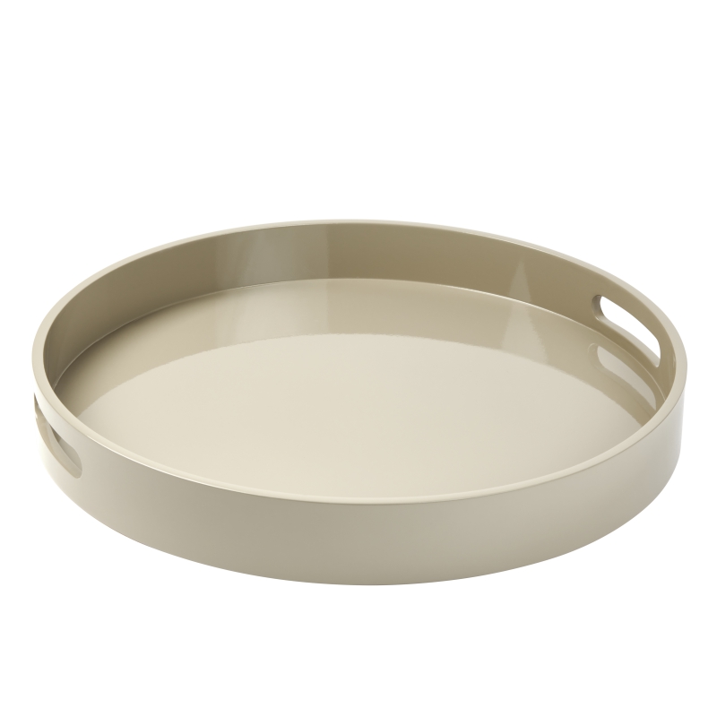 Maße: ø 45 cm, H 5,7 cm Material: MDF-lackiert Farbe: taupe -