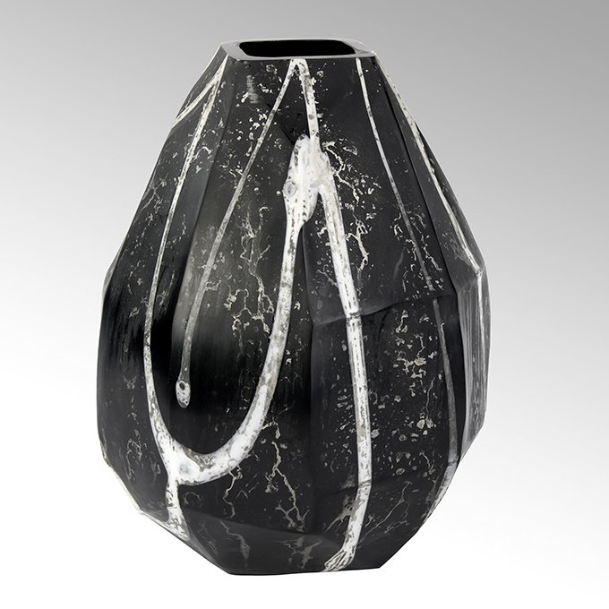 Glaskunst ist nicht ohne Grund ein vielgesuchtes Sammlerthema. Seit Jahrhunderten schon hat dieses Material in seiner Vielfalt die Menschen fasziniert und begeistert. Mit der Boda Vase ist der Lambert Manufaktur wieder ein besonderes Stück gelungen. Die Vase wird in mehreren Lagen Glas mundgeblasen, und dabei werden wie zufällig weiße Glaspartikel und Fäden mit eingeschmolzen. Das opake Werkstück wird anschließend von Hand sorgfältig satiniert. Diese Technik macht jede Vase zu einem einzigartigen Unikat. Die Vase darf nicht in die Spülmaschine, es könnte zu Kühlsprüngen kommen. Sie wird von Hand mit warmem Wasser und Spülmittel gereinigt.Maße: H 25 cm, ø 20 cm Material: Glas Farbe: onyx -