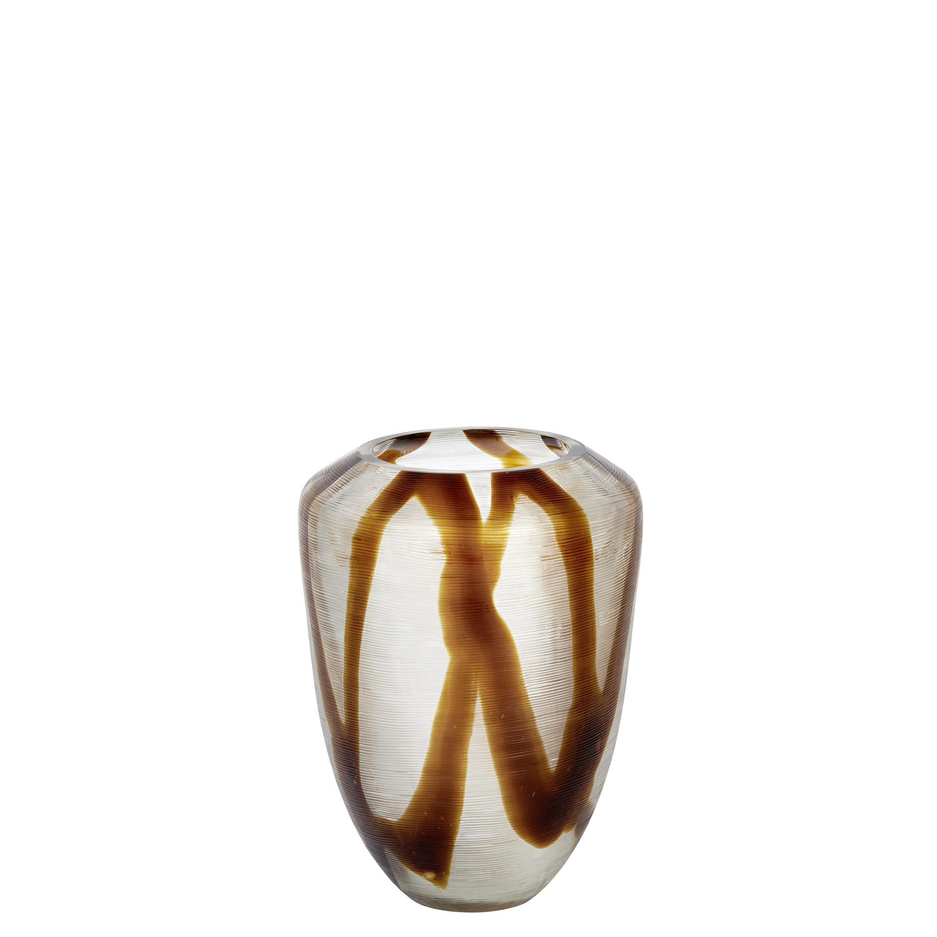 Mundgeblasene und handgefertigte Vasen sind einer der wichtigsten Bestandteile der Lambert Kollektion. Eine besondere Vorliebe gilt dem Studioglas. Dieses Glas zeigt deutlich seinen handwerklichen Charakter mit kleinen Unregelmäßigkeiten und Einschlüssen, was jedes der mundgeblasenen Stücke zu einem Unikat werden lässt. Bei den Milena Vasen werden Farbstreifen wie zufällig mit eingeblasen und breiten sich ungleichmäßig im Werkstück aus. Über diesen Effekt zieht sich ein feiner unregelmäßiger Handschliff. Jeder Schleifer interpretiert diesen freien Schliff auf seine eigene Art und Weise. Die Vase sollte von Hand mit warmem Wasser und Spülmittel gereinigt werden.Maße: 20 x 20 cm, H 27 cm Material: Glas, handgeschliffen Farbe: weiß / bernstein -
