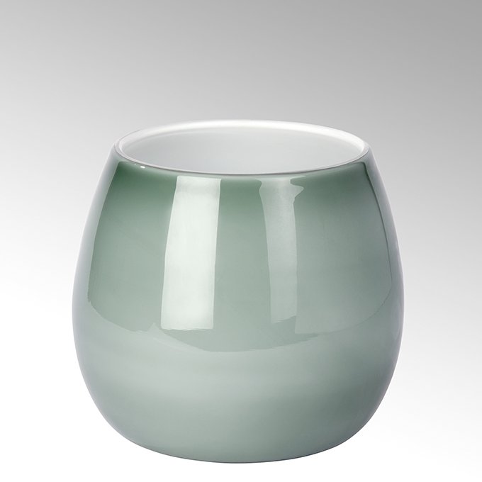 Maße: H 18 cm, ø 17 cm Material: Überfangglas Farbe: basalt -