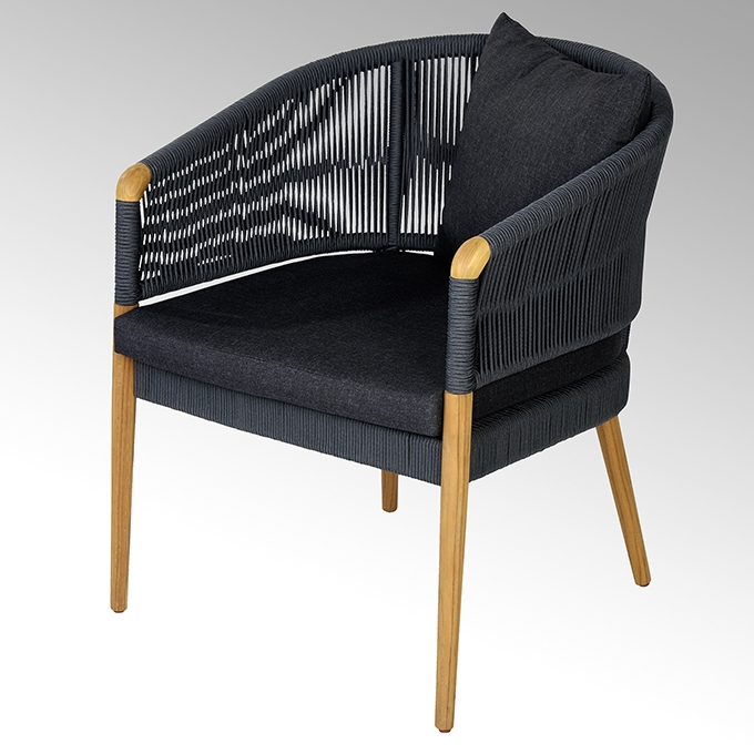 Material: Stahlrohr schwarz, pulverbeschichtet mit Teak Holz, Geflecht aus 'Fish Net Rope'