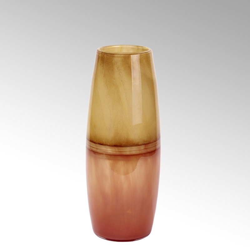 Glas fasziniert die Menschen seit Jahrtausenden. Es eröffnet in seiner Vielfalt ein immer wieder neues Spektrum für das Spiel mit Form und Farbe. Die mundgeblasenen Enshi Vasen werden aus einem dicken Glas mit spannenden Farbabläufen gefertigt. Jeder dieser Farbabläufe bekommt einen anderen Verlauf. Somit wird auch jede einzelne Vase zu einem kleinen Unikat. Hartnäckige Ränder, Kalkablagerungen und Pflanzenreste lassen sich mit Essigreiniger entfernen. Spülen Sie Ihre Vase nicht in der Spülmaschine, es könnte zu sogenannten Kühlsprüngen kommen.Maße: H 35,7 cm, ø 14 cm Material: Glas Farbe: safran -