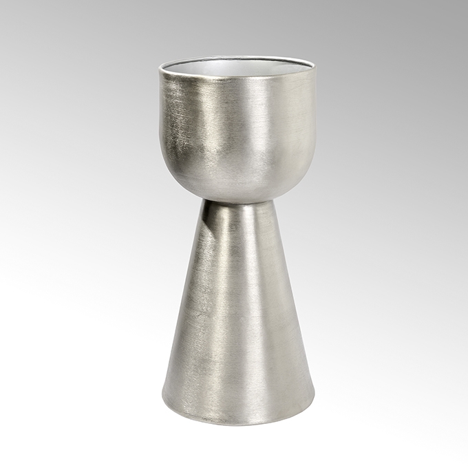 Aussergewöhnliche dekorative Gefäße geben ein Statement zu Geschmack und Kultiviertheit im Wohnambiente ab. In handwerklicher Technik wurden die üppigen Formen des Laokha Gefäßes von Hand in ihre Form getrieben. Die Oberfläche wurde fein gebürstet, um die Form gestalterisch zu unterstützen. Laokha eignet sich vornehmlich als dekoratives Gefäß im Wohnbereich. Wasser sollte nicht über einen langen Zeitraum im Gefäß stehen bleiben, weil es zu Korrosion kommen kann. Um das zu verhindern, nutzen Sie einen Kunststoffteller oder Einsatz. Durch das elegante und zugleich schlichte Design lässt sich Laokha toll kombinieren und integrieren. Lambert steht für Liebe zum Detail, jedes Produkt der Kollektionen besitzt seine ganz eigene Herstellungsgeschichte. Mit großer Sorgfalt werden die Materialien ausgewählt und verarbeitet, so gehen Handwerkskunst und Kunsthandwerk eine tiefe Verbindung ein, und es entstehen individuelle Objekte, die weltweit Begeisterung finden.Maße: H 84 cm, ø 38 cm Material: Aluminium Farbe: silber gebürstet -